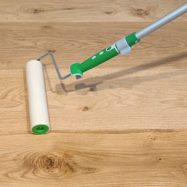 - Równomierne rozprowadzenie cienkiej warstwy oleju wałkiem wzdłuż słojów