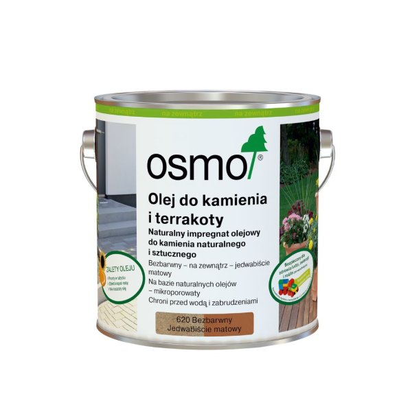 Olej Osmo do kamienia i terakoty nadają się do bezbarwnej impregnacji kamienia naturalnego o otwartych porach, polerowaną do gładkiej i szorstkiej powierzchni oraz betonu na zewnątrz. Szczególnie nadaje się do płyt chodnikowych i parapetów z granitu, wapienia i łupków.